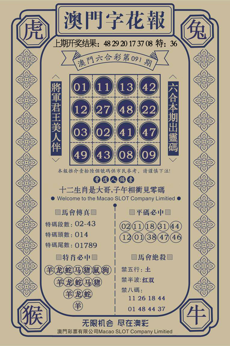 | 龙03.27.39 | 兔04.28.40 | 猪20.32.44 | 狗09.21.33 | 牛18.30.42 | 虎17.29.41 |